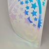 A magical, shiny opalescent color that shifts a rainbow of mellow pastel colors from cloudy blue to misty purple to warm gauzy pink.